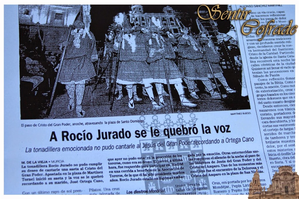 Hoy Lunes de Pentecostés, glorioso día en que la Virgen del Rocío estaría paseando en Procesión por su aldea, nuestra mirada se centra en otra Rocío, muy querida además en esta tierra murciana y que tal día como hoy marchó al cielo. Una mujer que nunca tuvo pudor de mostrar su fe, sus creencias y que lo manifestó en numerosas ocasiones con sus canciones. Muchos pensarán que tal afecto deviene de su matrimonio con el torero cartagenero Ortega Cano, pero esto es anterior a ello.