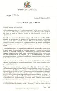 La noticia llega en vísperas del Carmen, a las puertas de la celebración de numerosos cultos en honor de la Estrella de los Mares, quien es protagonista del mes de Julio. Aún con la actual situación, bajo las medidas oportunas, ya podemos asistir con total normalidad a la celebración de la Santa Misa, comulgar y poder visitar a nuestras imágenes de gran devoción. Otro de los aspectos importantes a tratar, que forma parte de la realidad de la Iglesia de Cartagena, es el culto externo tales como romerías o procesiones. En este sentido Monseñor Lorca Planes se manifiesta a favor, siempre y cuando se vea oportuno hacerlo. Para ello se deberá consultar con el Vicario Episcopal y de poder celebrarse se deberán cumplir estrictamente todas las normas, distancia entre los participantes, uso de mascarilla, etc.