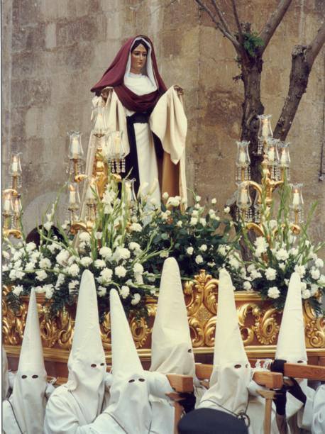 Fue esta misma imagen quien salió en procesión unos años con la Cofradía del Santísimo Cristo Yacente de Murcia, cuando esta tenía su sede en la iglesia de Santo Domingo. Para la ocasión la Virgen del Carmen era vestida de «hebrea», acompañando así cada tarde del Sábado Santo a su Hijo por las calles de la ciudad.