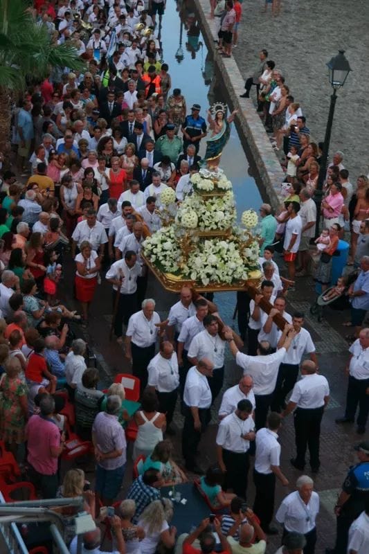 Que la Virgen del Carmen es la reina de los mares, es por todos conocidos. Pero a todo ello debemos de sumar el «reinado» que ejerce en Los Alcázares y al rededores, bajo el nombre de la Asunción. Aquel es lugar de encuentro de miles de veraneantes, en donde los huertanos pasaban los días más calurosos huyendo de las altas temperaturas de la capital. Es allí donde les sigue esperando la preciosa imagen de la Virgen de la Asunción, obra de Sánchez Lozano, que cada año recorre por tierra y mar la feligresía de su templo.