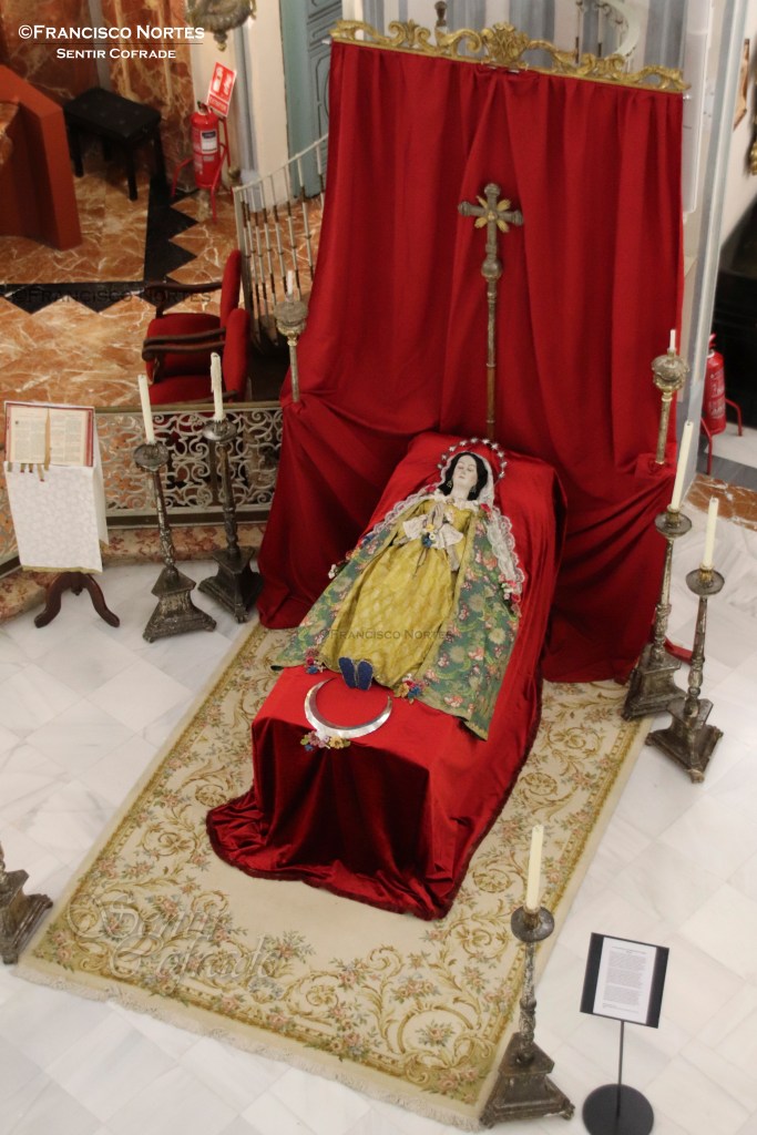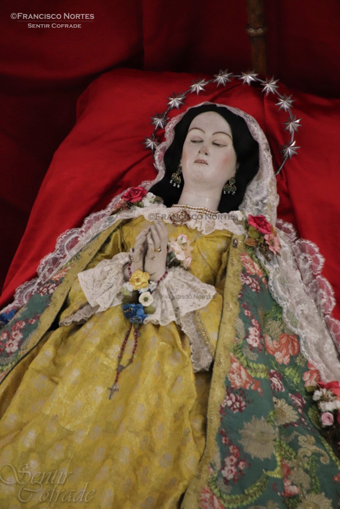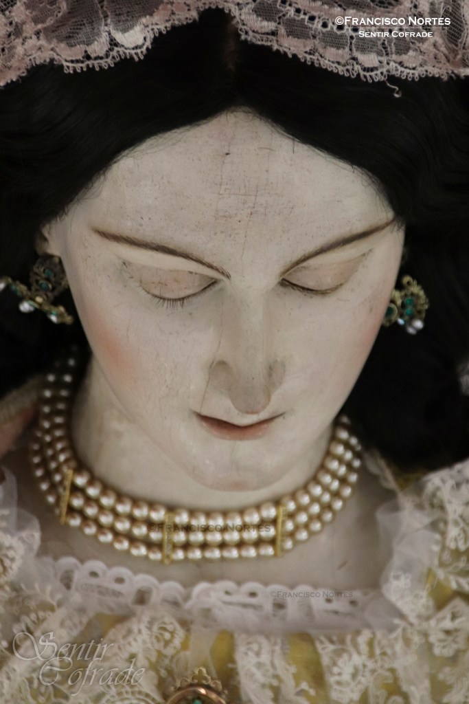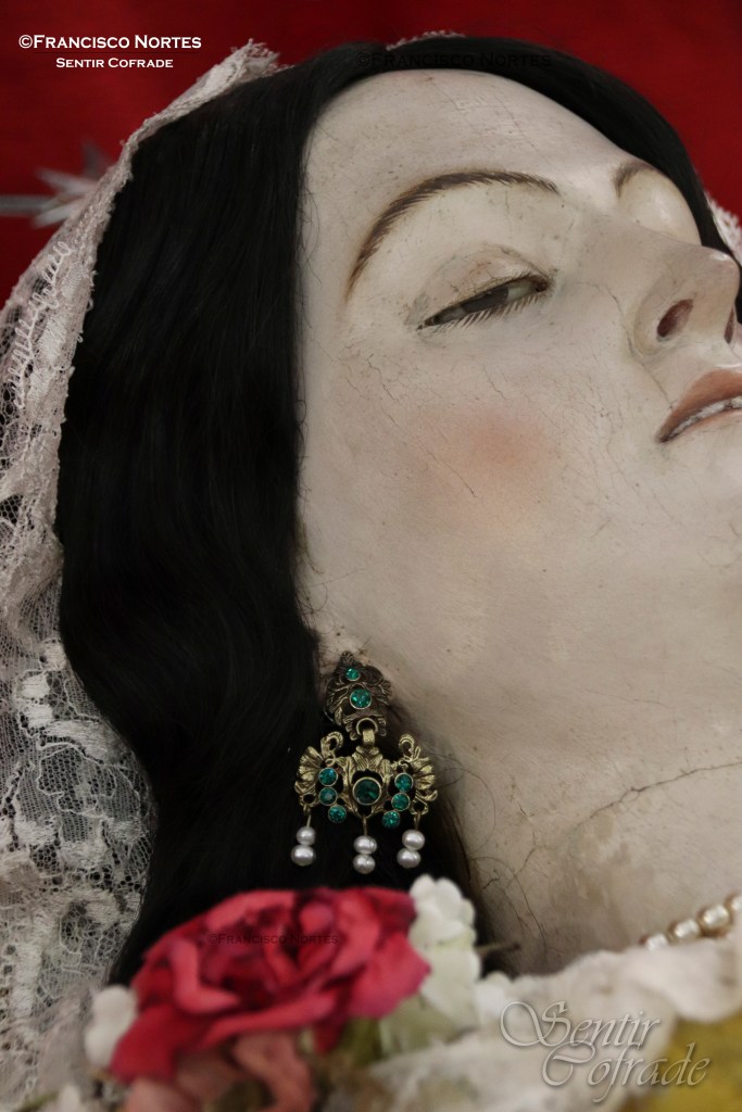 Una imagen enigmática, a la que no vendría nada mal visitar el Centro de Restauración de la Comunidad Autónoma, de la que no muchas referencias tenemos. De autor anónimo, si bien pudiera ser de las manos que en su día embellecieron a la Virgen de Gracia (Titular del mismo templo), por ciertos paralelismos que alberga en su interior. Aquella fue la conclusión a la que llegamos al contemplarla por primera vez de cerca, mientras la preparábamos. Esto no sería de extrañar, pero no hay nada escrito u otra información al respecto que pudiera corroborarlo, hasta el momento.