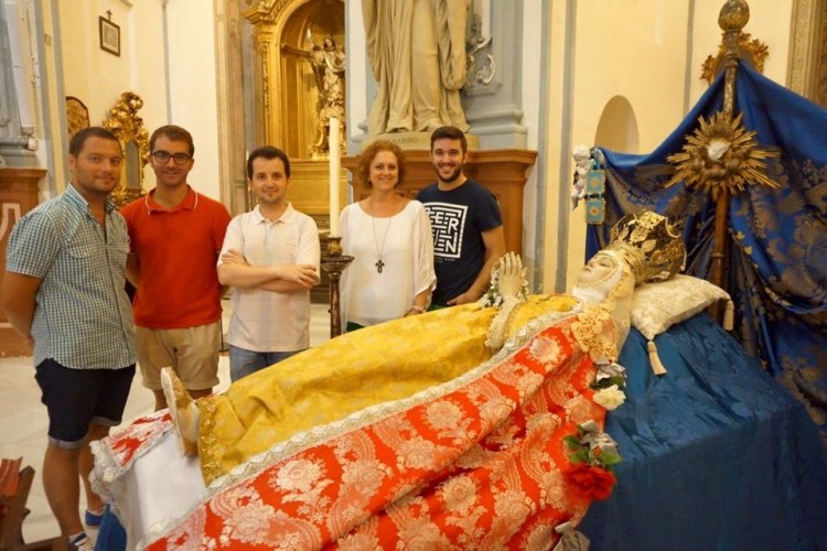Recientemente, en la iglesia de la Virgen de Gracia – del Conjunto Monumental de San Juan de Dios (Murcia) – se vive con especial énfasis estos días de agosto. En aquel templo, que es un auténtico museo que alberga una gran muestra escultórica y devocional, reside la protagonista de estas líneas: la Virgen de la Asunción o el Tránsito de Nuestra Señora. En la segunda capilla del lado derecho, entre San Rafael y el Cristo Yacente, se posa el cuerpo de la Virgen que yace en una urna. Allí ha permanecido un largo tiempo en que, hace unos años, se retomó la costumbre de volver al «culto» en sus días de agosto. Fue así como un grupo de amigos, amantes de nuestra Amantísima Madre, pusimos en marcha aquel entrañable proyecto en donde pudimos participar activamente del mismo en sus primeros años. Todo un privilegio haber podido devolver, si quiera un ápice, del esplendor que a buen seguro rodeó a esta dulce talla de la Virgen.