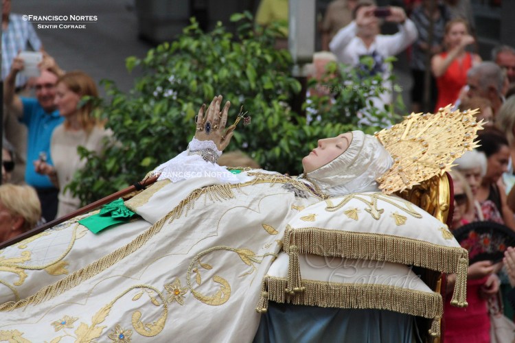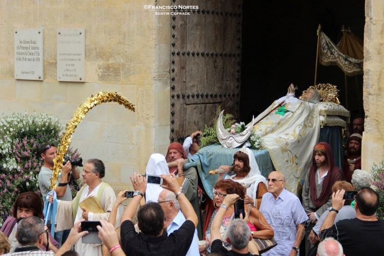 Junto a las representaciones, de la Vespra (14 de agosto) y la Festa (15 de agosto), tiene lugar la Solemne Procesión de la Patrona en la mañana de su día grande, paseando por el centro histórico de la ciudad. En ella vemos a Nuestra Señora con los Apóstoles, las Marías y los judíos. La pólvora se entremezcla con el olor a nardos, jazmín y alábega, en una jornada festiva que tiene por protagonista a la Reina de todo lo creado. Es por ello que en esta ocasión queremos darle protagonismo a este cortejo procesional.
