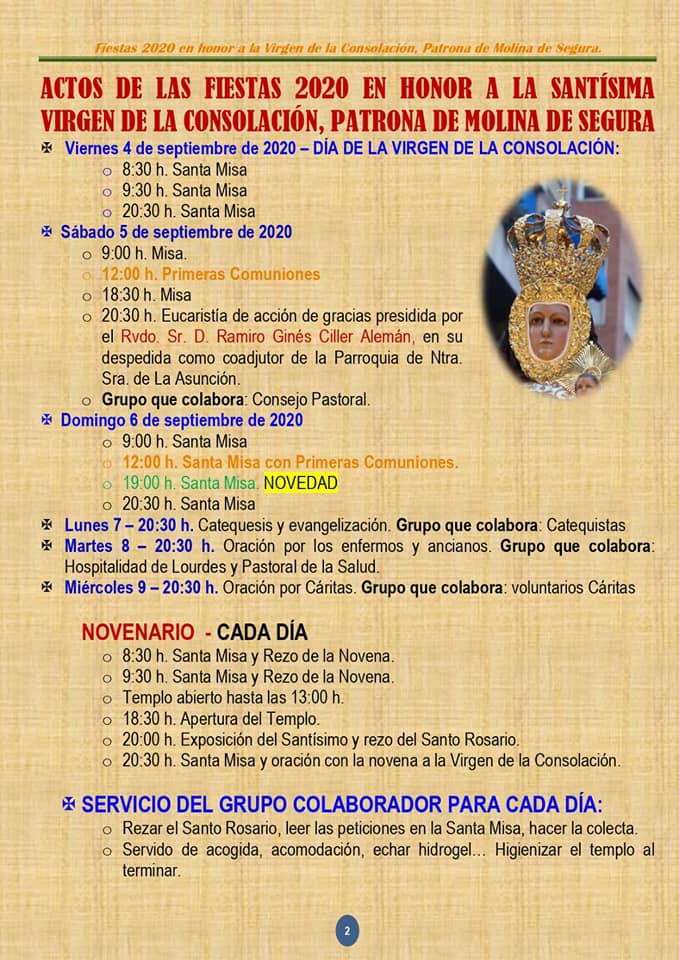 Molina de Segura vivirá este septiembre unas fiestas muy especiales en honor de su Patrona, la Virgen de la Consolación
