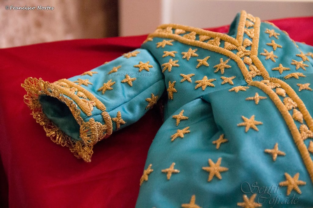Este terno fue bordado en el Paso Blanco de Lorca, con diseño del arquitecto don Fernando Garrido, siendo ésta una idea original de la periodista Lucía de las Casas. Una ocasión especial para visitar a la Madre de Murcia en estos días tan esperados, cargados de fe, devoción y mucho amor por la Santísima Virgen en su murciana advocación de la Fuensanta.