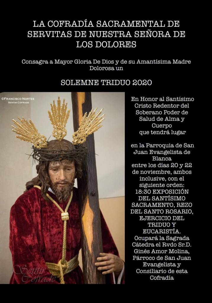 La imagen del Santísimo Cristo Redentor del Soberano Poder de Salud de Alma y Cuerpo, también conocido como el Cristo de la Sacramental de los Servitas de Blanca, es una talla completa, realizada en madera de cedro real y policromada al óleo por el escultor imaginero de Blanca, José María Molina Palazón en 2018.