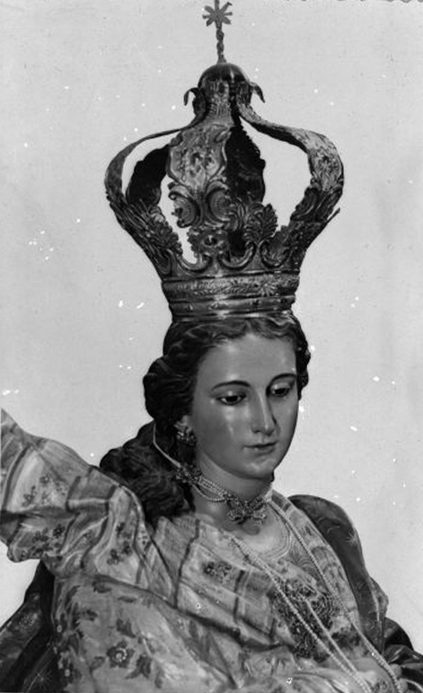 “Murcia, en la mañana del domingo, rindió acto de homenaje y desagravio a la Purísima Concepción en la iglesia de la Merced de la orden franciscana en nuestra ciudad, con motivo de la bendición de la nueva imagen, notable obra de Sánchez Lozano, que viene a sustituir a la de Salzillo, destruida en el trágico día 12 de mayo de 1931 en la quema del convento.