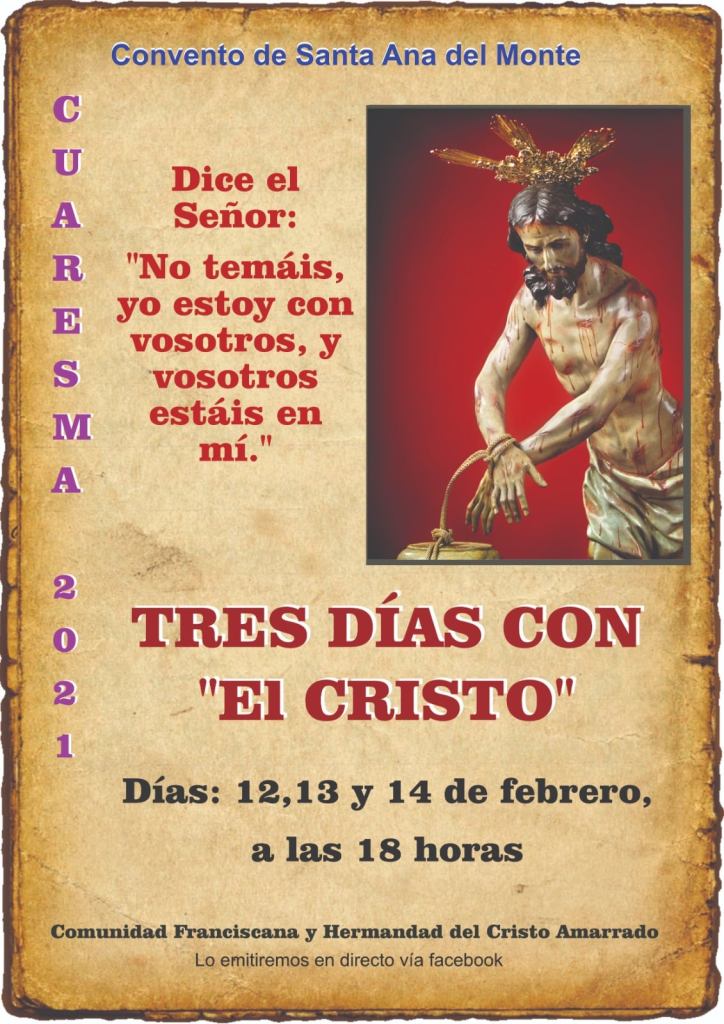 El Monasterio de Santa Ana acoge estos días los cultos en honor a la devota imagen del Amarrado, obra del inmortal Salzillo. Dadas las actuales restricciones, con el fin de frenar la pandemia, dichos cultos no serán presenciales. Serán retransmitidos a través de la página de Facebook del propio Monasterio, a la cual podéis acceder pinchando sobre el cartel de cultos.