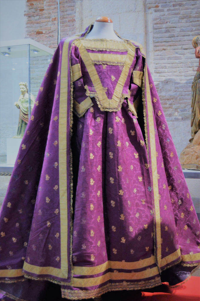 Para el inicio de esta nueva Cuaresma luce la Patrona una de sus prendas históricas, siendo un conjunto en color morado del siglo XIX. Es un terno morado de seda y oro, salpicado de ramilletes de flores, estilo imperio y confeccionado según lo patrones de los trajes antiguos de la Virgen de la Fuensanta. Sin duda de un gran acierto al devolver a los murcianos esta estampa, la cual nos rememora a las rogativas pretéritas en las que Nuestra Señora de la Fuensanta vestía de morado y pudo lucir este terno que ahora luce.