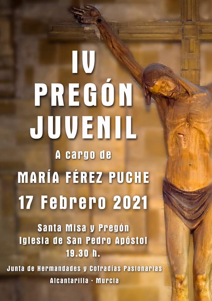 Este año se celebrará el IV Pregón Juvenil, el cual correrá a cargo de María Férez Puche, el cual tendrá lugar el Miércoles de Ceniza tras la Santa Misa de las 19:30h en San Pedro Apóstol.