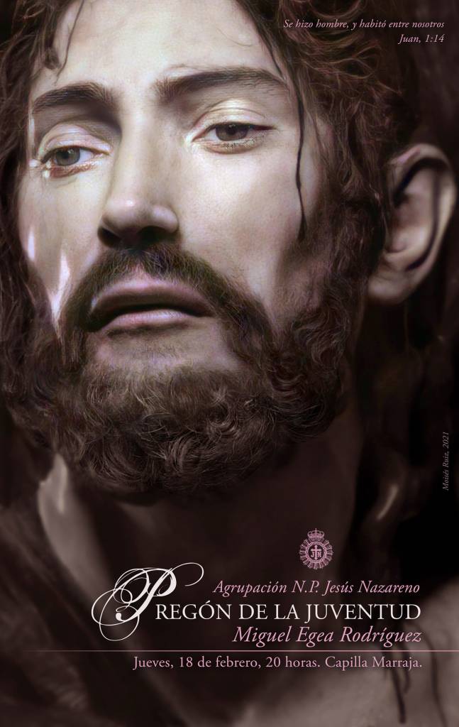 Esta tarde tendrá lugar el Pregón de la Juventud, organizado por la Agrupación del Nazareno de la Cofradía de los Marrajos. Será en la Iglesia de Santo Domingo, a las 20h, en la capilla de la propia Cofradía. El pregonero será el joven Miguel Egea Rodríguez. Para anunciar este acto el fotógrafo Moisés Ruiz ha realizado esta obra. Se trata de un primer plano del Titular de los Marrajos, quien se nos presenta «humanizado», dejando impactado a quien lo contempla.