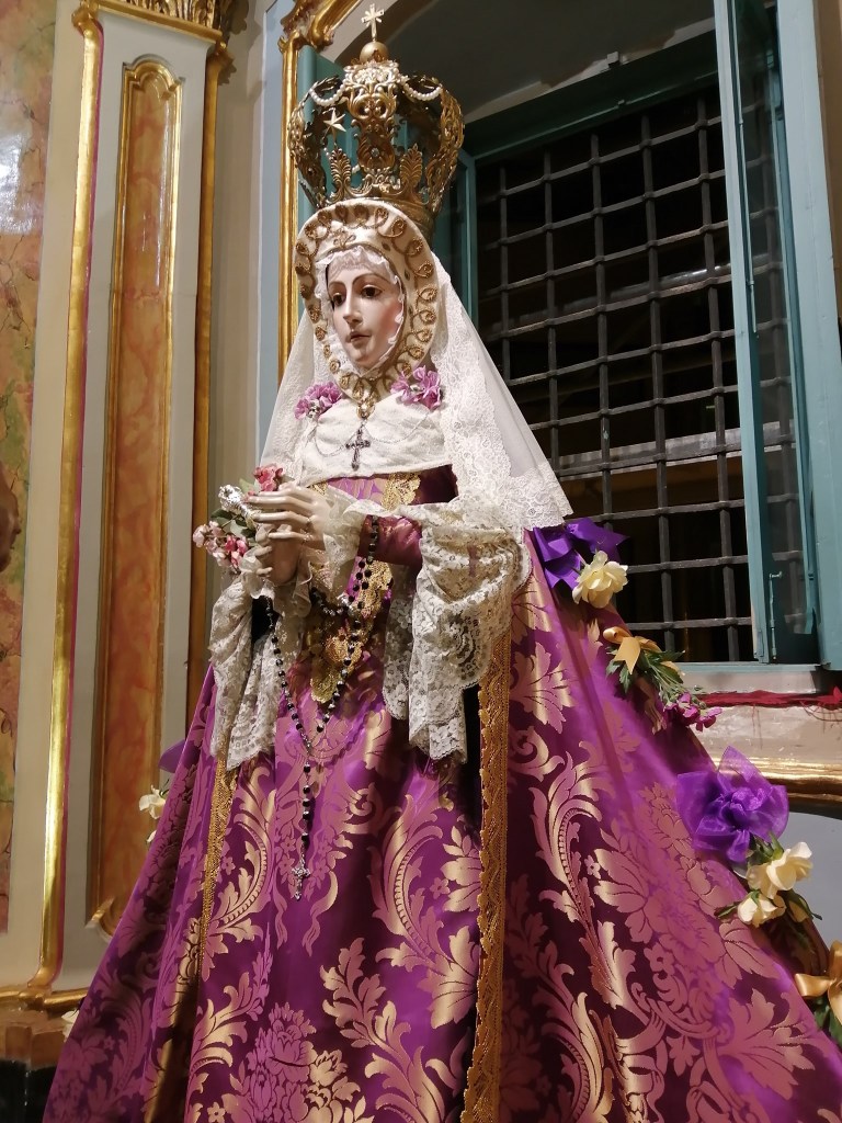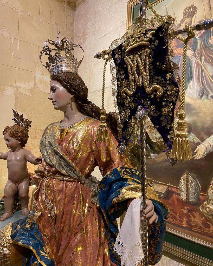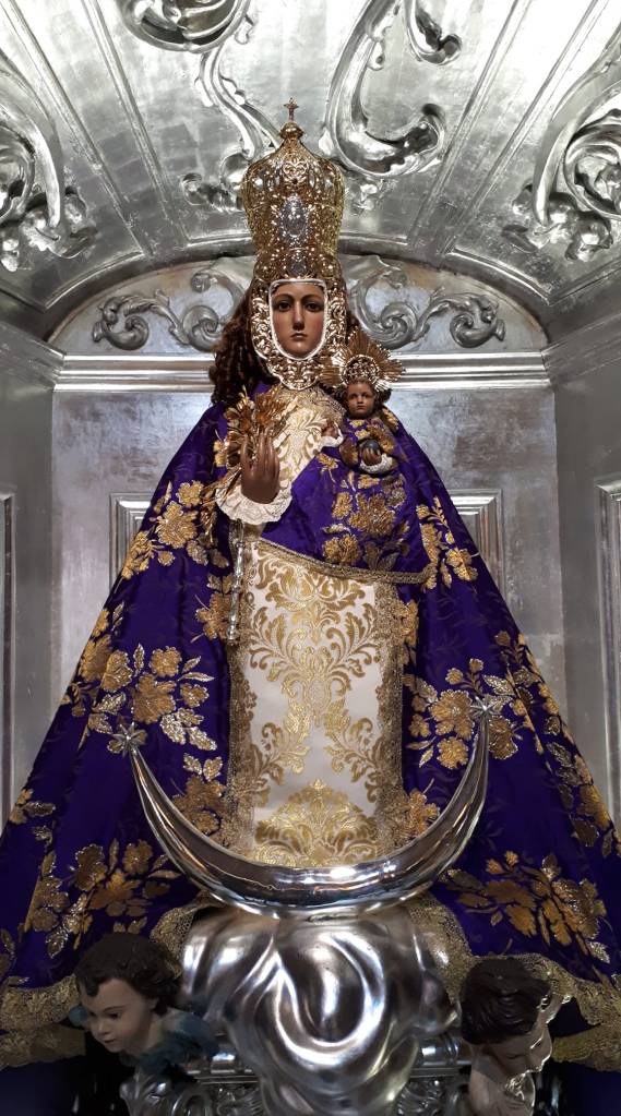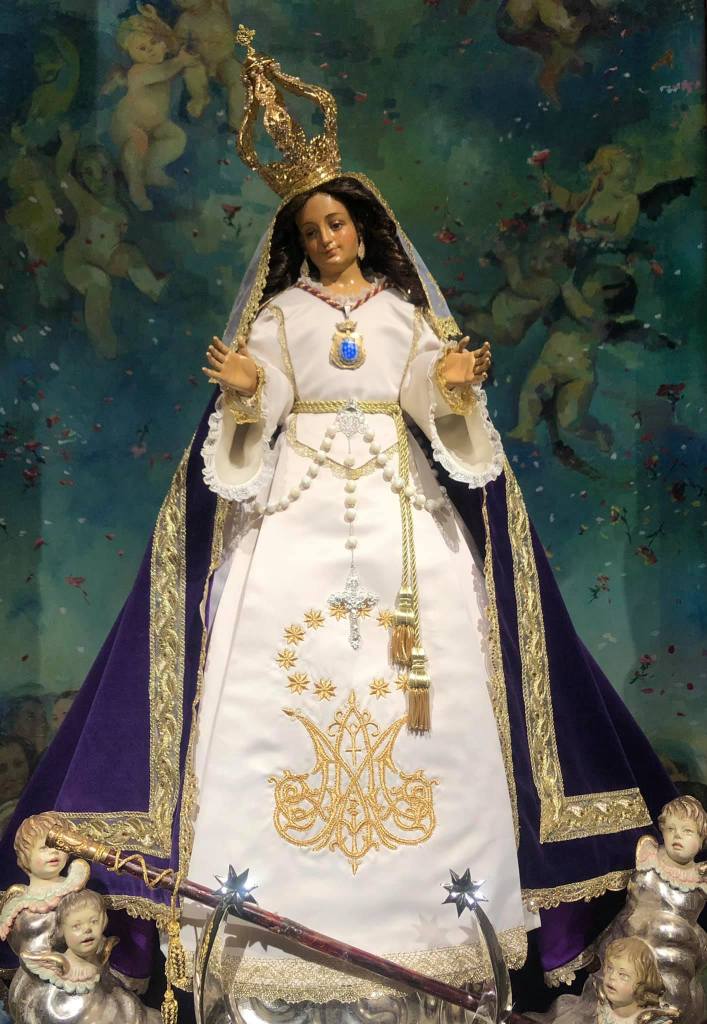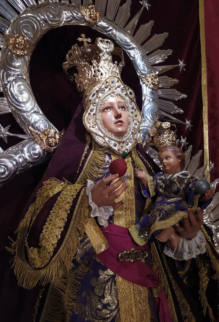 Cada año la Cuaresma nos trae estampas que nunca faltan, tales como altares de cultos, traslados, Vía Crucis y una de ellas son las imágenes marianas luciendo sus mantos morados. Recientemente hablábamos de la Virgen de la Fuensanta, que luce un manto del siglo XIX para este tiempo de conversión, la cual cuenta con diversos ternos en esta tonalidad. Al igual que otras imágenes, llegado el Miércoles de Ceniza nos regalan esa estampa con sabor auténtico a Cuaresma, a penitencia, a comenzar a vivir la espera de los días grandes en que celebramos la Pasión, Muerte y Resurrección de Nuestro Señor. Es el caso de Alcantarilla y Molina de Segura, quienes visten a sus respectivas Patronas con manto morado.
