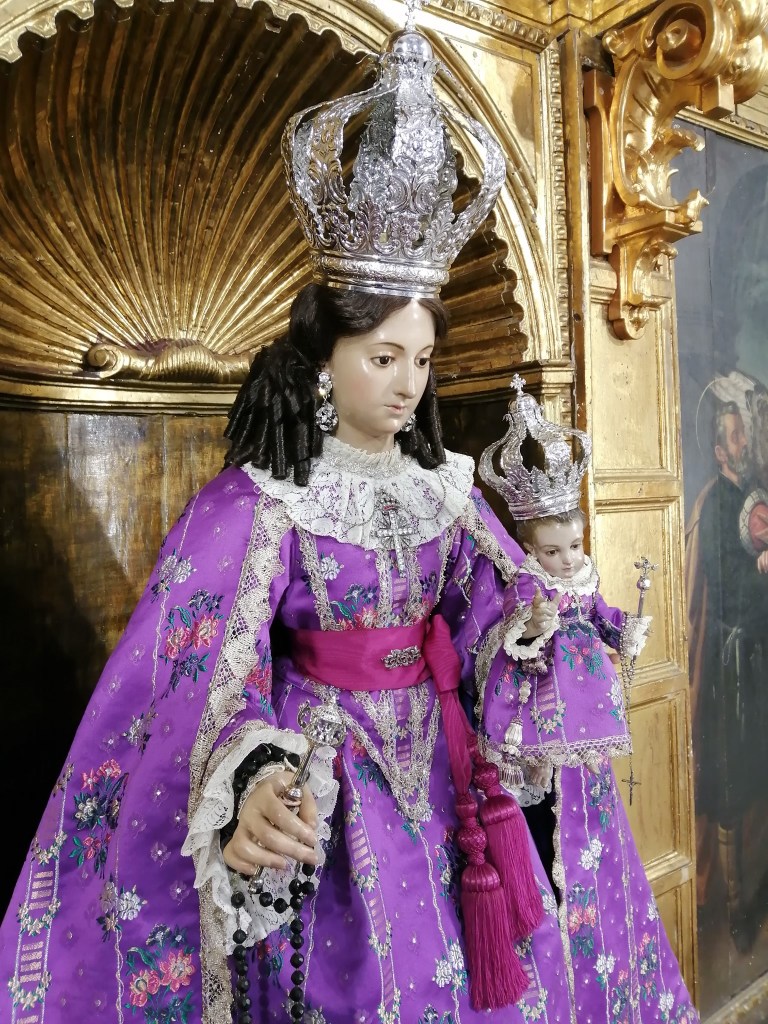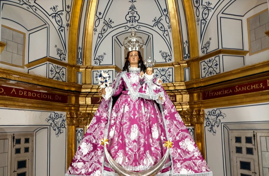 Llegados a la capital claros ejemplos son la Virgen de la Candelaria, en Santa Eulalia, quien luce de morado una vez concluidas sus fiestas, la Virgen del Rosario de Santa Ana, y Nuestra Señora de Gracia y Buen Suceso, que preside su iglesia en el Conjunto Monumental San Juan de Dios vestida de morado como de costumbre, como también lo hace la Virgen de la Cabeza en San Juan Bautista.