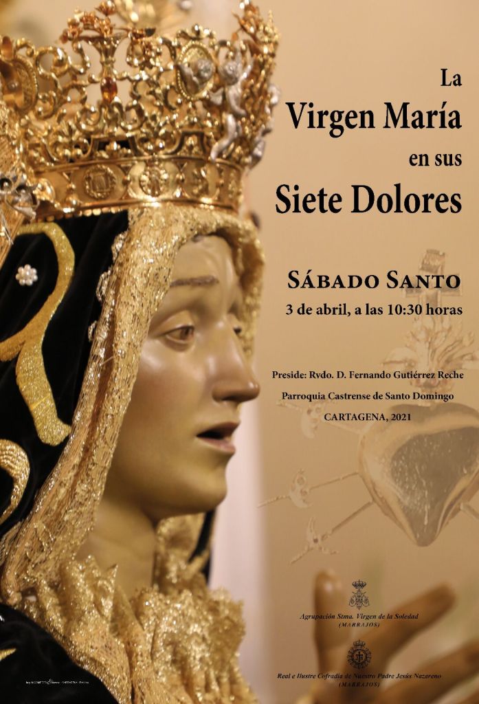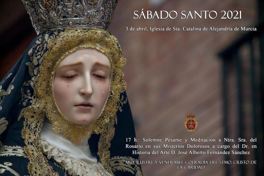 - 17 h. Solemne Pésame y Meditación de Sábado Santo a Nuestra Señora del Rosario a cargo del Dr. en Historia del Arte D. José Alberto Fernández Sánchez. Cofradía de la Caridad. Iglesia de Santa Catalina.