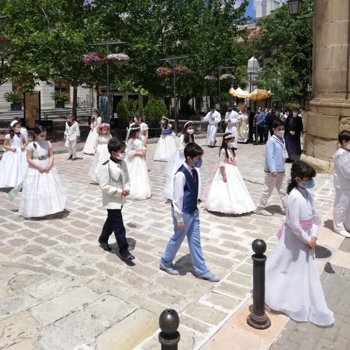En esta semana de la Octava del Corpus, continuamos recordando como se ha vivido en nuestra Diócesis la Solemnidad del Corpus Christi. Hoy nos vamos hasta Yecla, en donde realizaron una solemnísima celebración mañana y tarde. Fue precisamente durante la fiesta matutina en que el Señor salió a la calle. Bajo palio, acompañado por los niños de la primera Comunión y entre nubes de incienso, el Corpus recorrió las cercanías de la Basílica de la Purísima.
