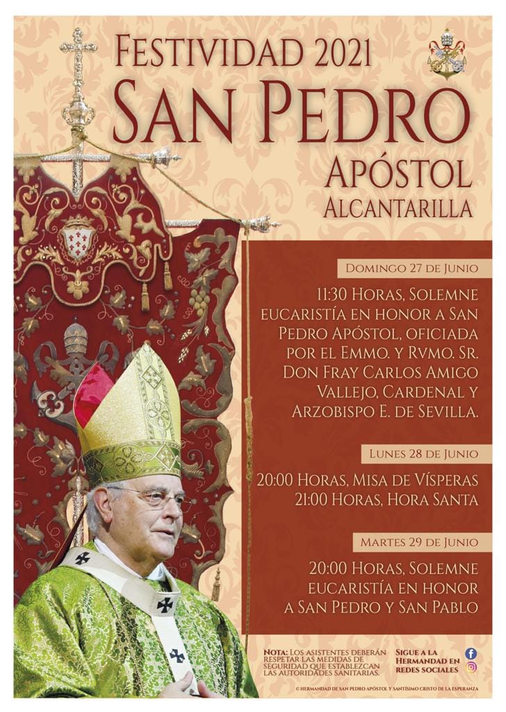 Alcantarilla, ciudad cofrade donde las haya, se prepara para celebrar a San Pedro Apóstol. Su Cofradía ha elaborado un programa de actos y cultos, los cuales comenzarán este próximo sábado con un concierto. Además se espera la visita del Cardenal Amigo.