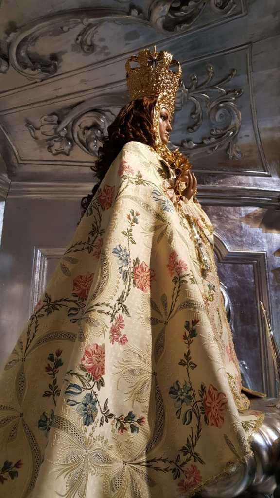 La Virgen de la Consolación, Patrona de Molina de Segura, constituye sin duda una de las grandes devociones de nuestra Región. Para ello solo basta con ver imágenes de sus multitudinarios traslados o la Solemne Procesión del domingo de sus fiestas. Pero además hay que sumar las muestras de amor que la Madre de los molinenses ha despertado en sus hijos a lo largo de los siglos. El más reciente de ellos es el regalo de un terno completo, que luce en el camarín de su Ermita.