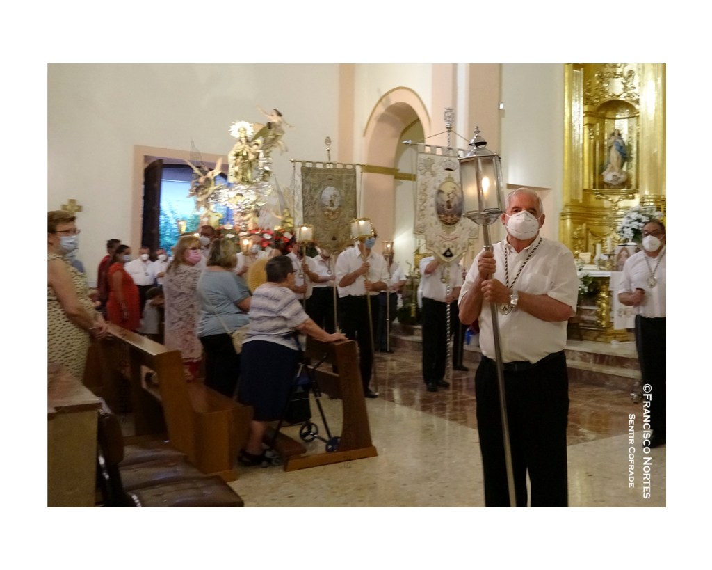 Como de costumbre, el domingo siguiente al 16 de julio, tuvo lugar la Solemne Procesión con la Patrona. En esta ocasión no fue por las calles del pueblo, si no que lo hizo de forma claustral. A los sones de Mater Mea y El Evangelista, interpretados por la Banda de Beniaján, el grupo escultórico tallado por Sánchez Lozano caminó por las naves del templo. A su paso por la puerta principal la Virgen se asomó de nuevo a la plaza, en donde la esperaban los músicos que de nuevo interpretaron el Himno Nacional, mientras un volteo general de campanas anunciaba a Beniaján que su Madre estaba en la puerta del templo. Al paso por las capillas se rezó un Ave María y Gloria por los difuntos y la salud del mundo. El trono de la Virgen iba precedido de los estandartes de la Cofradía.