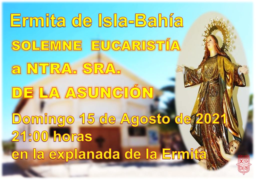 El próximo domingo en la Ermita de Isla – Bahía (Mazarrón), a la orilla del mar, se celebrará la Solemnidad de la Asunción de la Santísima Virgen. Será en la explanada de la Ermita el 15 de agosto a las 21h