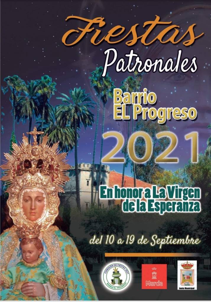El Barrio del Progreso, conocido también como el Barrio de las Ranas, prepara los días grandes de la pedanía para honrar a su Patrona. La Santísima Virgen de la Esperanza, obra del genial González Moreno, recibirá de un modo muy especial durante estos días el cariño de sus hijos.