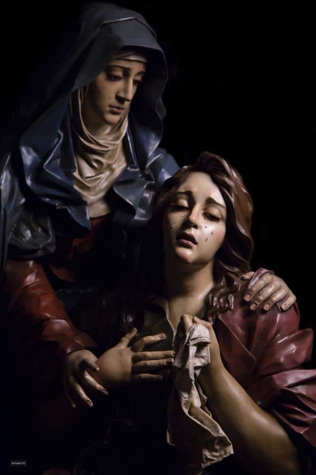 El próximo domingo, a las 12h, se celebrará la Santa Misa en San Juan de Dios ante el grupo escultórico de «María, Consuelo de los Afligidos». Las imágenes de López del Espino que tallara para la Cofradía de la Salud, recibirán el cariño de los cofrades hospitalarios, especialmente de todo su trono, formado íntegramente por mujeres.