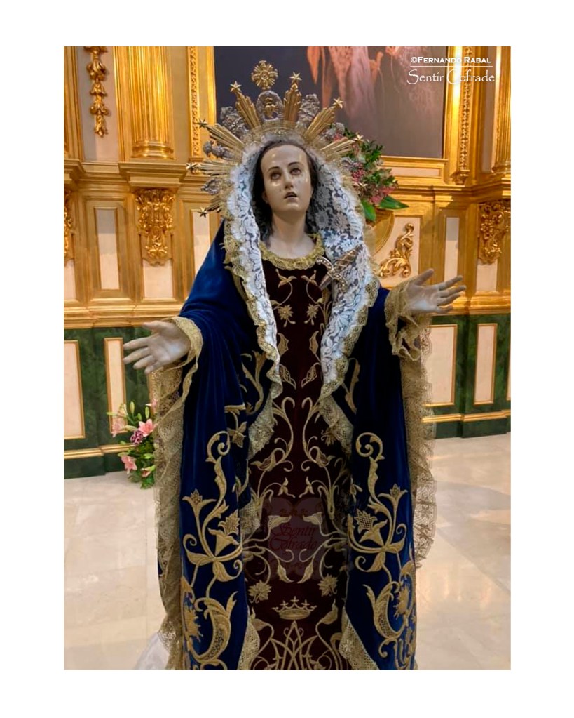 Tras meses de ausencia en la Parroquia, a causa de la restauración, la Virgen de los Dolores ha vuelto