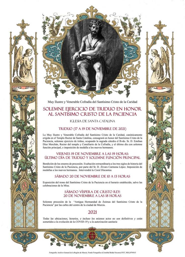 Hace algunos meses lo anunciábamos en Sentir Cofrade, la Cofradía de la Caridad saldrá a la calle con el Cristo de la Paciencia. La candorosa imagen que recibe culto en Santa Catalina ha pasado a formar parte de la cofradía del Sábado de Pasión, creando la «Antigua Hermandad de Ánimas del Stmo. Cristo de la Paciencia.» Se suma así a las dos procesiones de Semana Santa del Sábado de Pasión y la del Sábado Santo, junto al Rosario Público del mes de octubre, siendo la cuarta salida de los hermanos corintos a las calles de la capital.