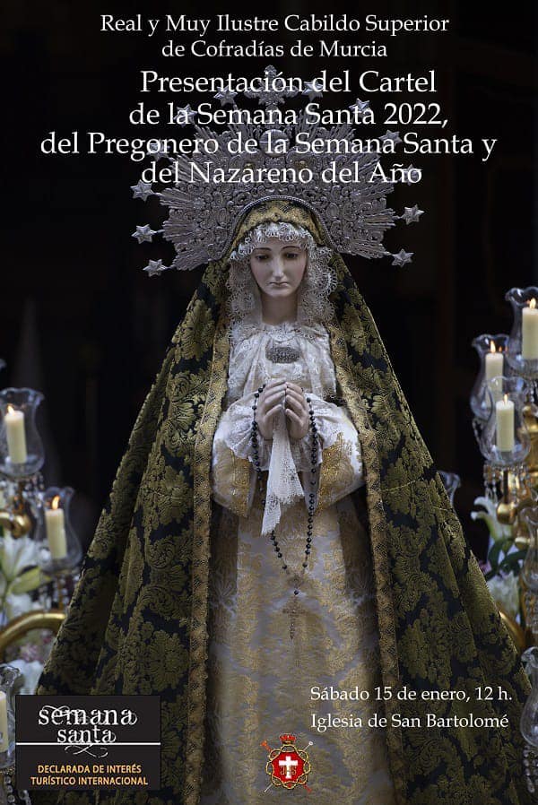 Queridos cofrades, de vuelta a la normalidad tras las fiestas, iniciamos el tiempo ordinario así, con la cuenta atrás para la Semana Santa 2022. Y no, no es producto de un «sentir cofrade jartible», pues la actualidad manda. Este próximo sábado Murcia y Mula, presentan sus carteles de Semana Santa, por la mañana en la capital, siendo este año la Cofradía del Yacente la protagonista del mismo y por la tarde en la ciudad del tambor, con la Hermandad del Carmen como anfitriona. A su vez Lorca y la pedanía murciana de San José de la Vega, lanzan las bases para el nuevo cartel, con un concurso para el mismo.
