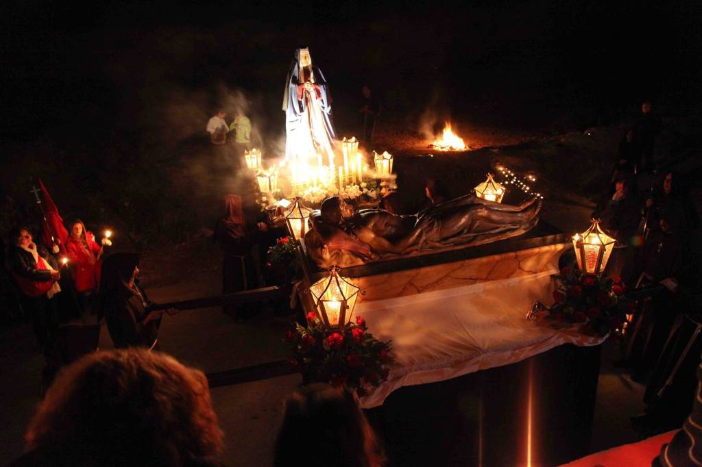Esta procesión se caracteriza por el recogimiento que la envuelve, en plena oscuridad, vistiendo sus cofrades con hábitos frailunos. Además cuentan con la presencia de los vecinos de la pedanía que alumbran el camino del Señor y la Madre.