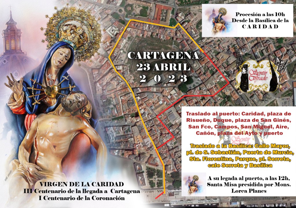 Tal y como anunció Sentir Cofrade, el domingo 23 de abril de 2023, será un día que pasará a la historia de Cartagena y su Diócesis. Y es que, al conmemorarse el III Centenario de su llegada a la ciudad portuaria y 100 años de su Coronación, la Virgen de la Caridad regresa a las calles con una solemne procesión.