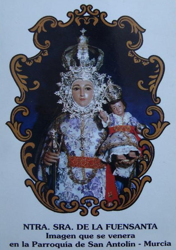 Llegado el mes de mayo, mes dedicado por excelencia a Nuestra Señora, el Barrio de San Antolín dedicada los 31 días del citado mes a la Virgen de la Fuensanta. En una capilla, junto al altar mayor donde se encuentra el Cristo del Perdón, recibe culto la Fuensantica, una réplica de la Patrona de Murcia a la que no le falta detalle alguno: bastón de mando, fajín y hasta condecoraciones militares. Era habitual, llegados estos días, que la imagen fuera conducida de casa en casa por todo el barrio. Así, del 1 al 31 de mayo, la Virgen de la Fuensanta salía en procesión por las calles de San Antolín, para visitar las casas de los vecinos, el Convento de las Capuchinas del Malecón, los viveros municipales y la peña la Fuensantica. Con el paso de las décadas, con aquella Hermandad que se fundó en 1991, las salidas de la Virgen quedaron en aquellos tres lugares mencionados, ya no visitaba las casas de los vecinos. Completaban el programa de cultos el primer y último domingo de mayo, en que la Fuensantica recorría San Antolín. Aquella algarabía que tuvo su origen en los años 60 del siglo XX, cuando comenzaron las procesiones con la Fuensantica, comenzaron a languidecer.