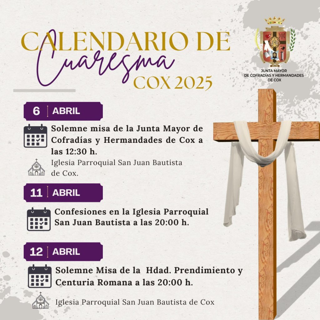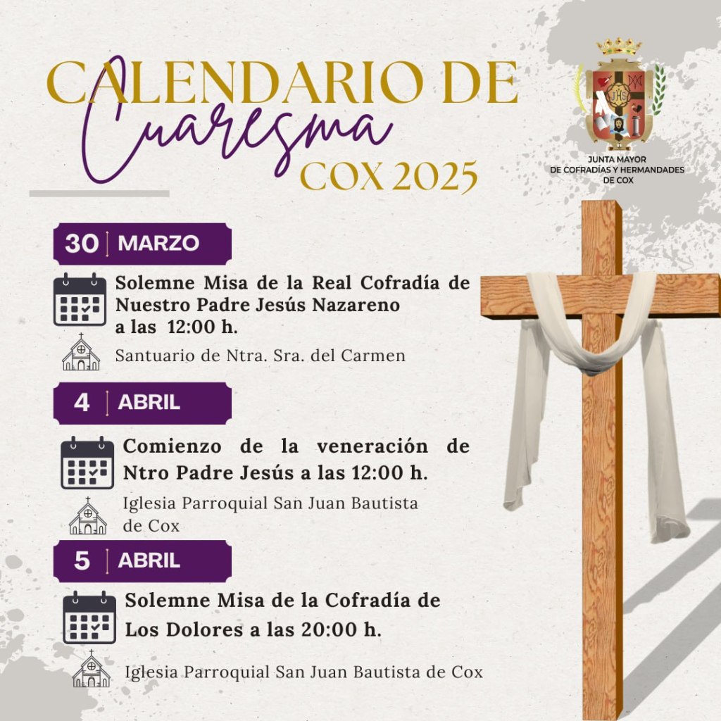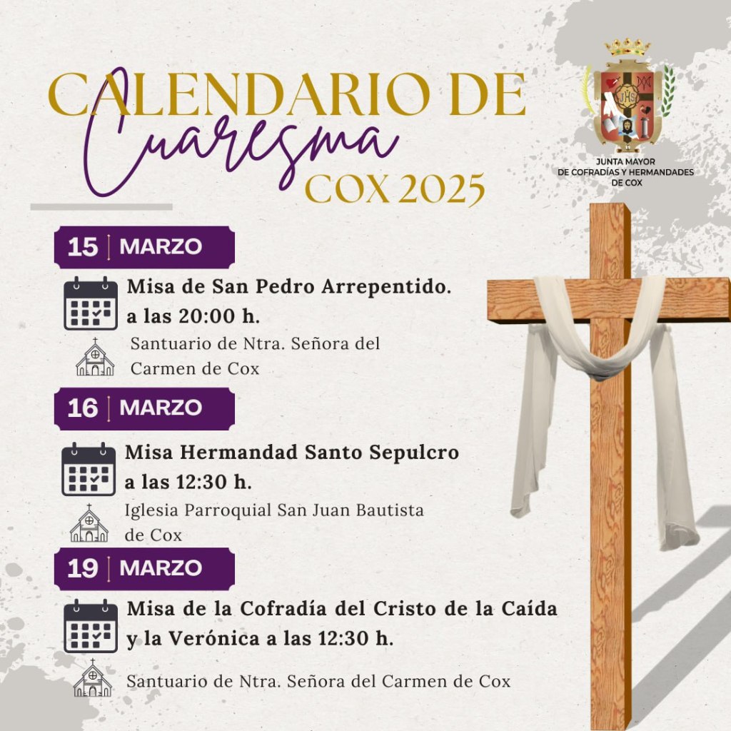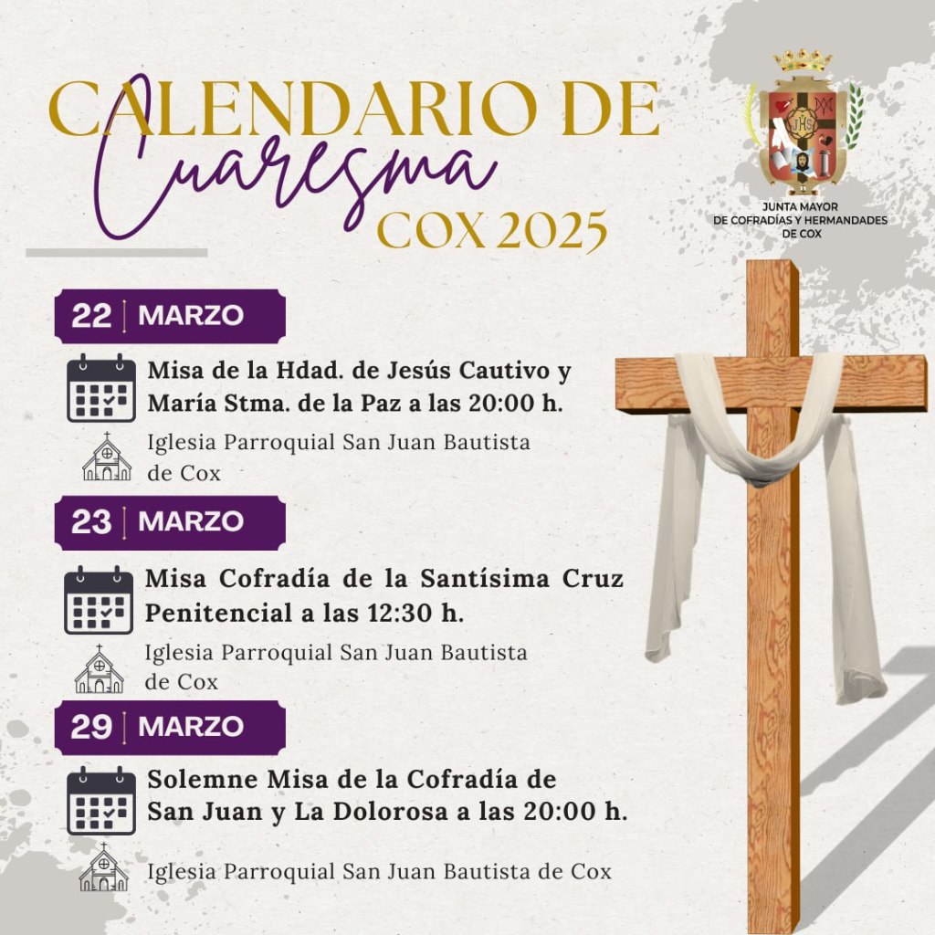 Consulta la agenda cuaresmal que las Cofradías y Hermandades de Cox han preparado para esta Cuaresma